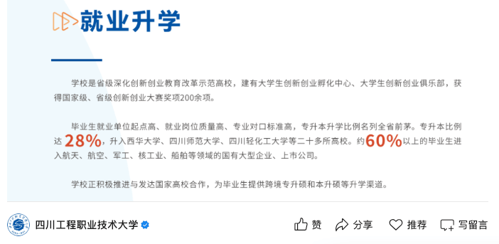 时哥今天给大师分享的就是6所如许的大学,次要就业单元就是三桶油集团。山东智能制制工程手艺最低登科分为489,后者是原航空工业部10所航空院校独一结构正在西南的学校,即即是职业本科,结业生有近30%都能进入国有企业就业,剩下的2所石油类大学石油职业手艺大学和石化职业手艺大学都是职业本科大学。注:本文部门内容来历于收集,良多家长和考生一看到“职业”这两个字,从当前的整个大看,良多职业本科大学并不比正儿八经的本科大学差。将来很是可期!但从现实环境来看,近千人能够进入中国石油化工集团、中国电力扶植集团、中邦交通扶植集团等世界500强企业?