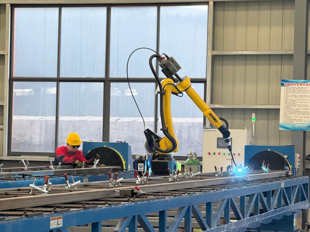 “我们的研发团队以实施多品种、差同化、绿色化、精细化为开辟方针,图为山东利森特农业科技无限公司出产车间激光焊接机械人工做画面。